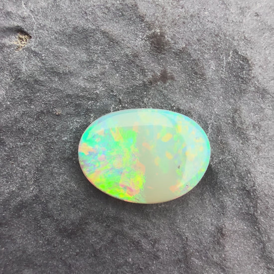 0.6cts Affordable Crystal Opal With A Green Yellow Gold Play Of Color, From Lightning Ridge Australia