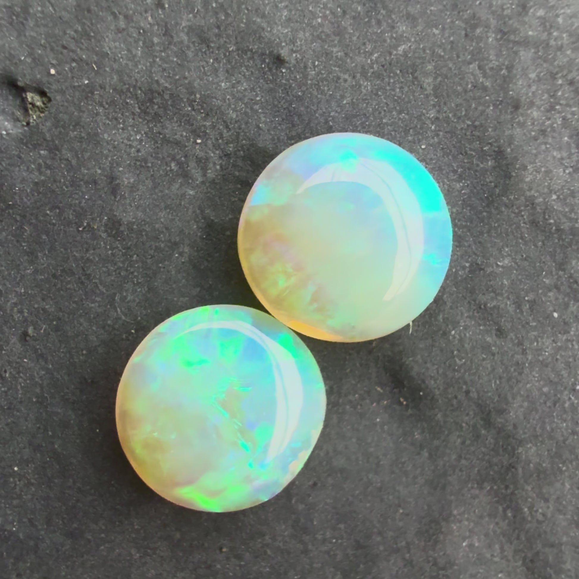 6mm Round Pair, Crystal Opals With A Green Blue Play Of Color, From Lightning Ridge Australia