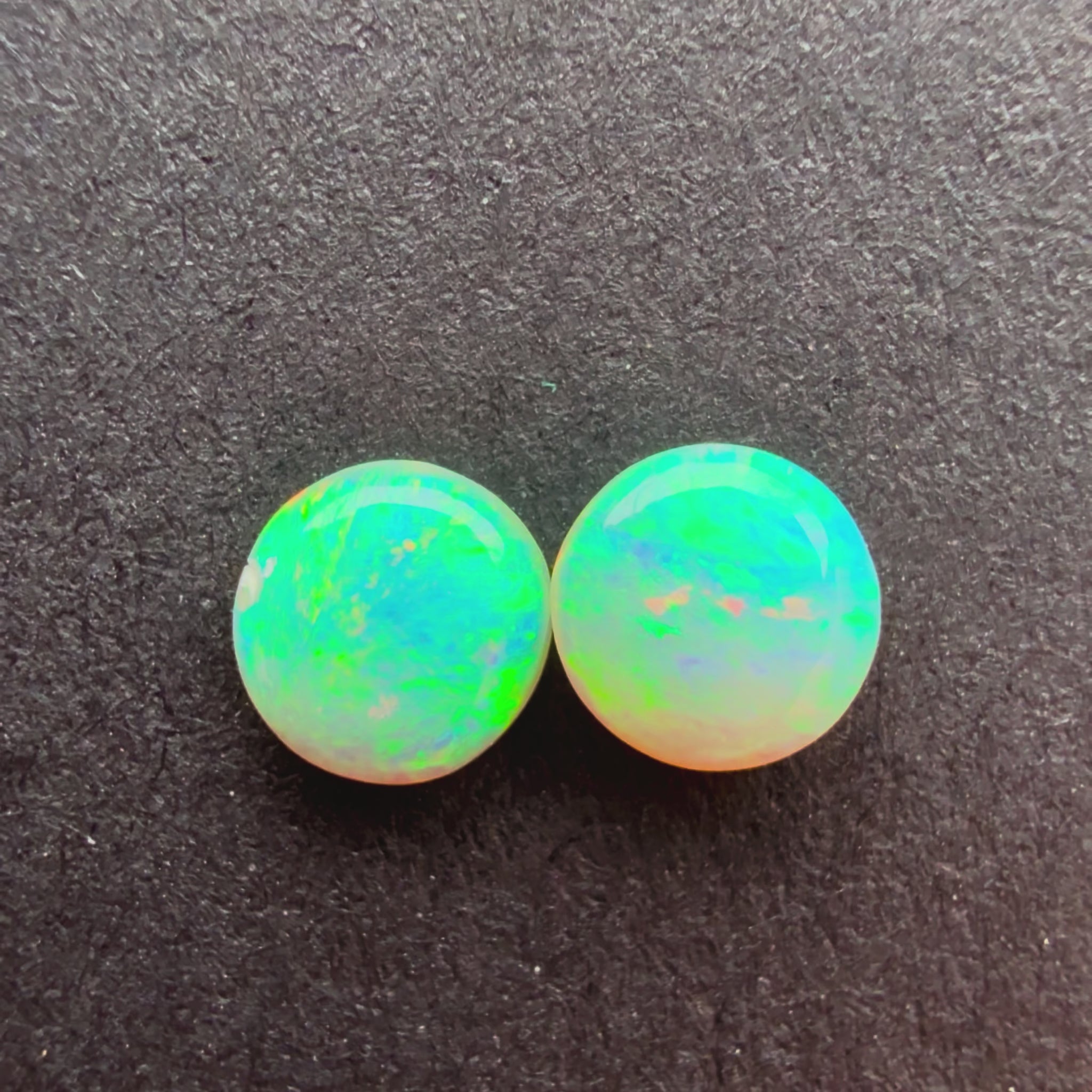 (Price For Pair) 4mm Affordable Crystal Opal Round Pair With A Blue Green Play Of Color, From Lightning Ridge Australia