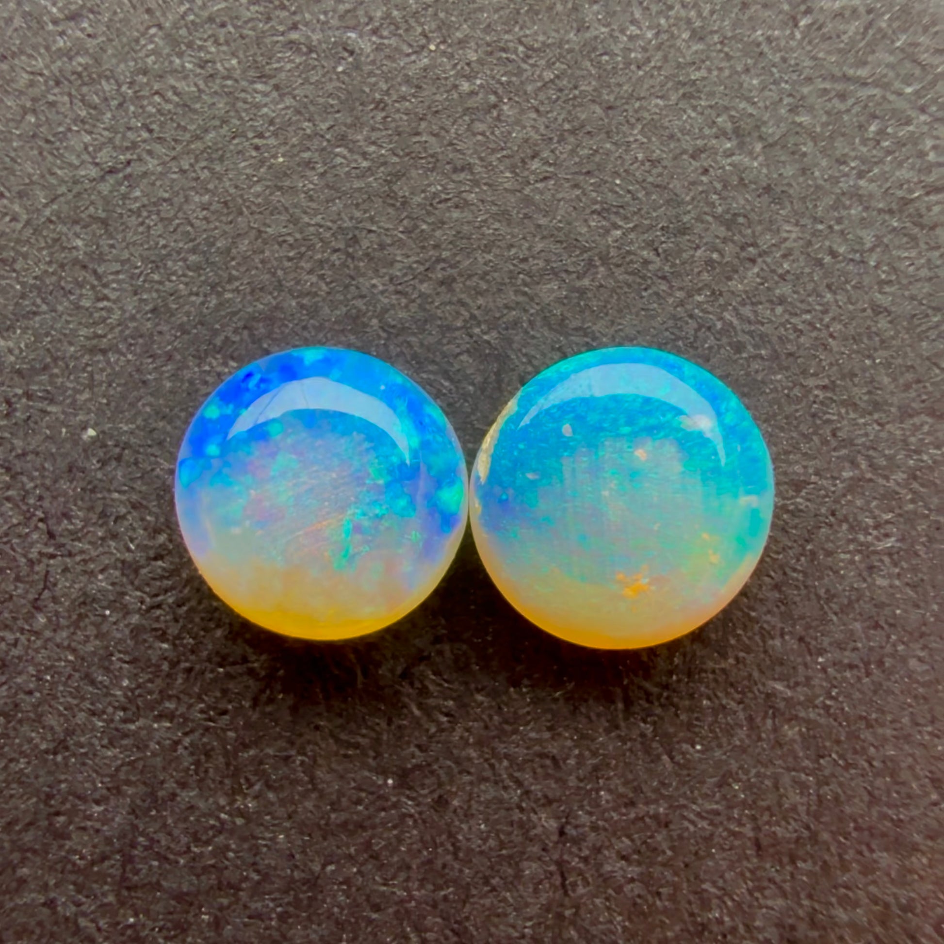 (Price For Pair) 4mm Affordable Crystal Opal Round Pair With A Blue Green Play Of Color, From Lightning Ridge Australia