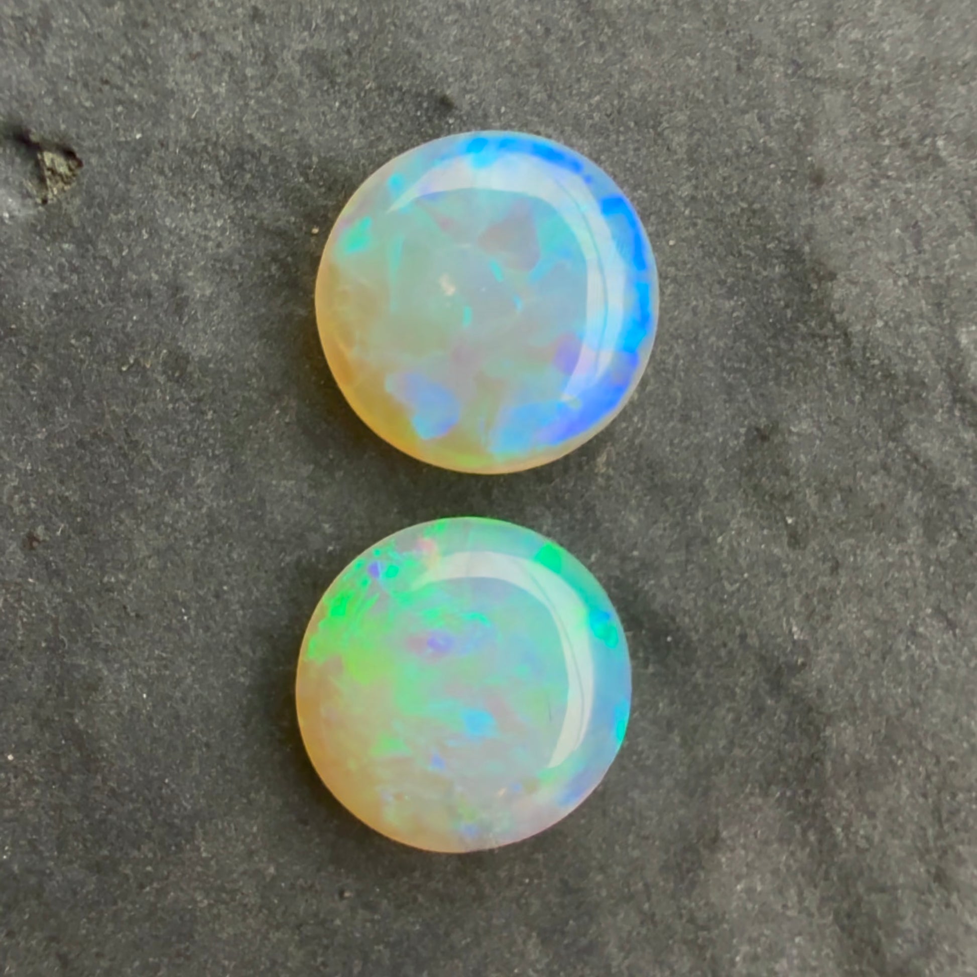 6mm Round Pair, Crystal Opals With A Green Blue Play Of Color, From Lightning Ridge Australia